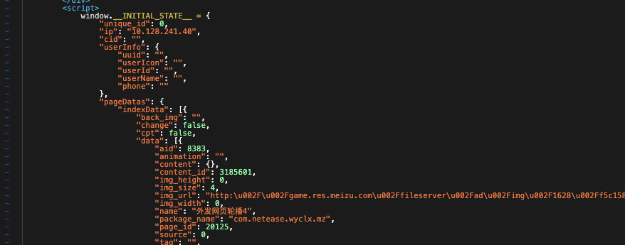 里面有初始化的 dom 结构, 有 css, 还有一个 script 标签. script 标签里把我们在服务端 entry 拿到的数据挂载了 window 上. 服务端的 vue 只是混入了个数据渲染了静态页面,客户端的 vue 才是去实现交互的!