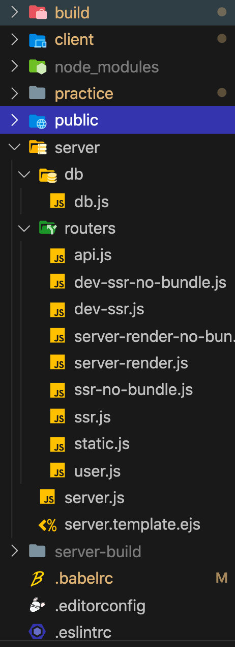 我们创建两个文件 dev-ssr 和 ssr,分别对应开发时的服务端渲染情况、上线的服务端渲染情况