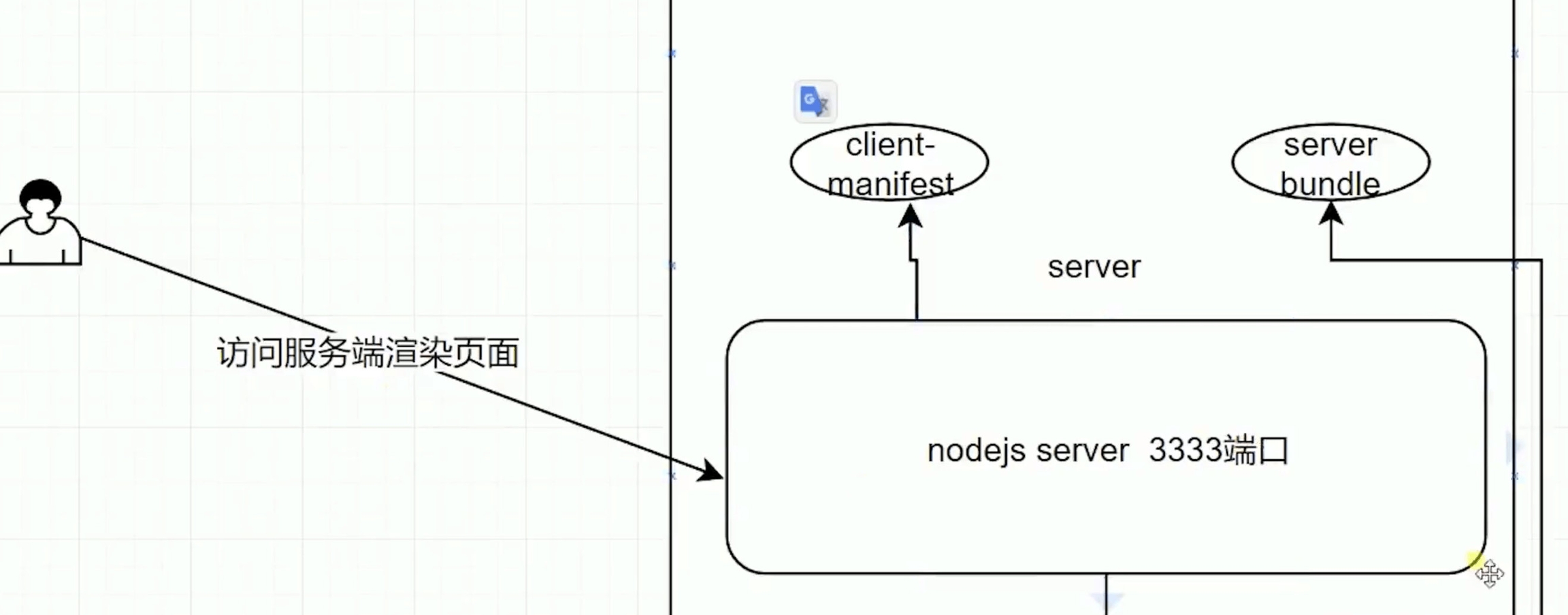 在vue-SSR中,会将代码打包分成两个部分: 服务端:bundle,客户端:bundle,Node.js会处理服务端bundle用于SSR,客户端bundle会在用户请求时和已经由SSR渲染出的页面一起返回给用户,然后在浏览器执行『注水』,接管Vue接下来的业务逻辑。