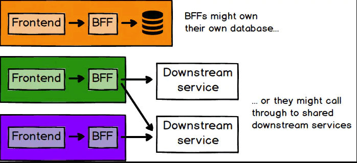我们推荐的模式是 Backends For Frontends 模式,其中每个前端应用程序都有一个相应的后端,后端的目的仅仅是为了满足该前端的需求。BFF 模式起初的粒度可能是每个前端平台(PC 页面、手机页面等)对应一个后端应用,但最终会变为每个微应用对应一个后端应用。 这里要说明一下,一个后端应用可能有独立业务逻辑和数据库的,也可能只是下游服务的聚合器。 如果微前端应用只有一个与之通信的 API,并且该 API 相当稳定,那么为它单独构建一个后台可能根本没有太大价值。指导原则是:构建微前端应用的团队不必等待其他团队为其构建什么事物