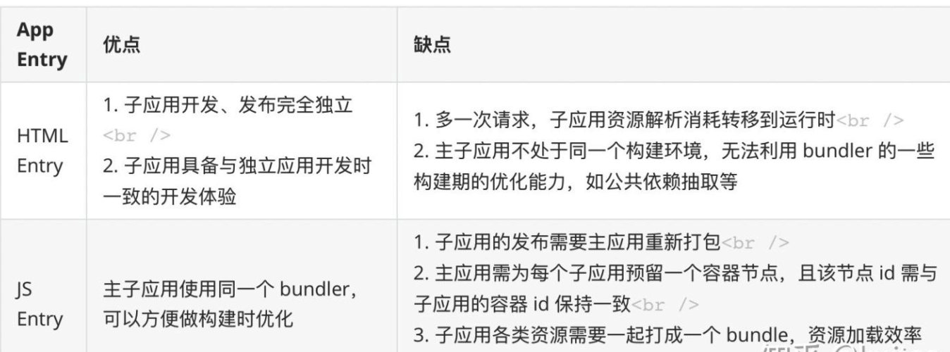 html entry 和 js entry jS Entry 的方式通常是子应用将资源打成一个 entry script,比如 single-spa 的 example 中的方式。但这个方案的限制也颇多,如要求子应用的所有资源打包到一个 js bundle 里,包括 css、图片等资源。除了打出来的包可能体积庞大之外的问题之外,资源的并行加载等特性也无法利用上。