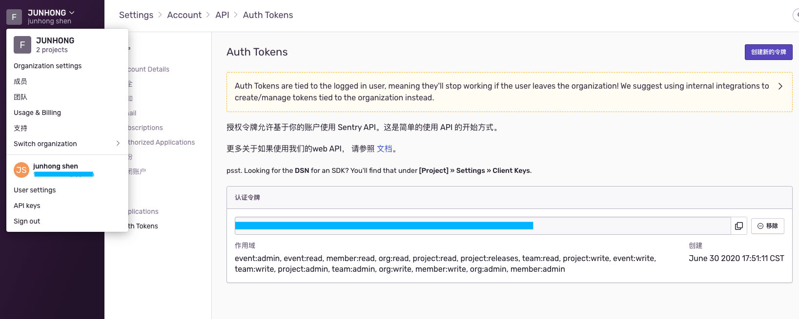 首先我们先注册登录一下, 接着创建一下项目生成 token. 点击头像左下角,选择API,生成token,勾选project:write权限